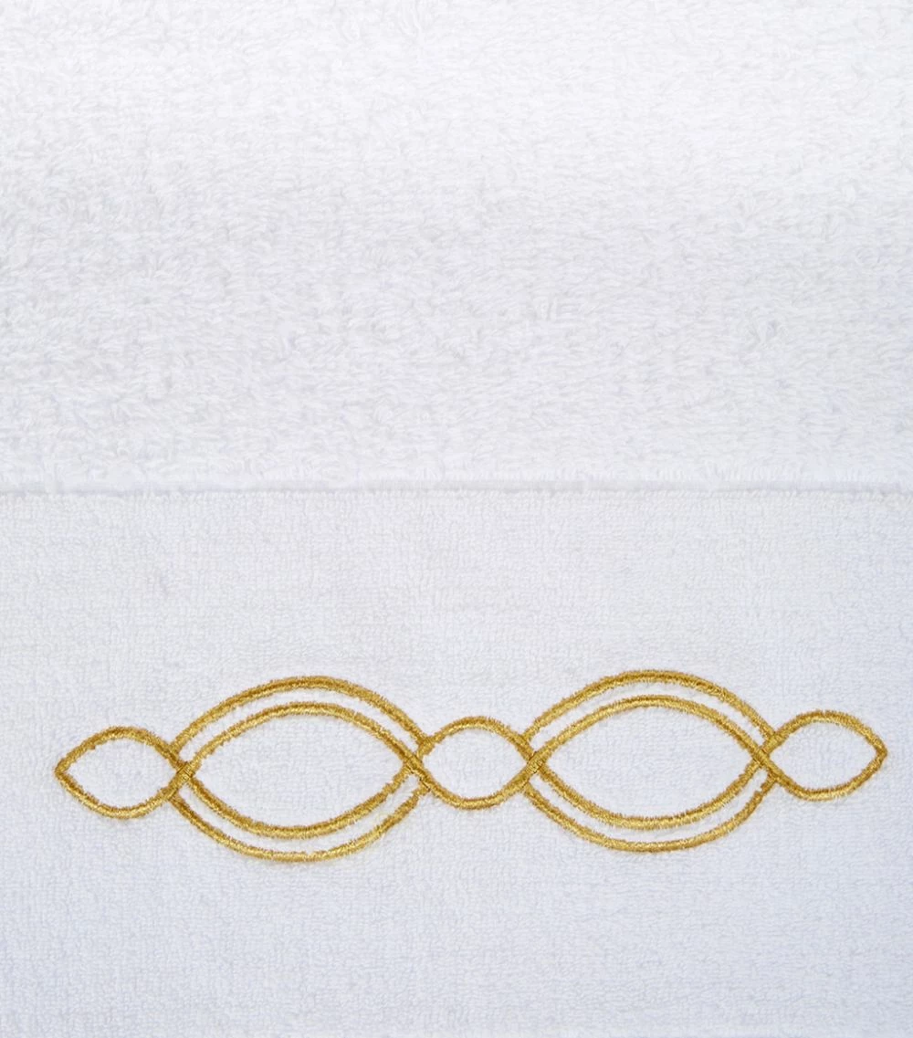 Crafted in plush white cotton, the Abyss & Habidecor Décor range is a sophisticated choice for your bathroom. Featuring a geometric design embroidered in gold thread, each towel is crafted from only the finest combed cotton for a super-soft and absorbent finish.