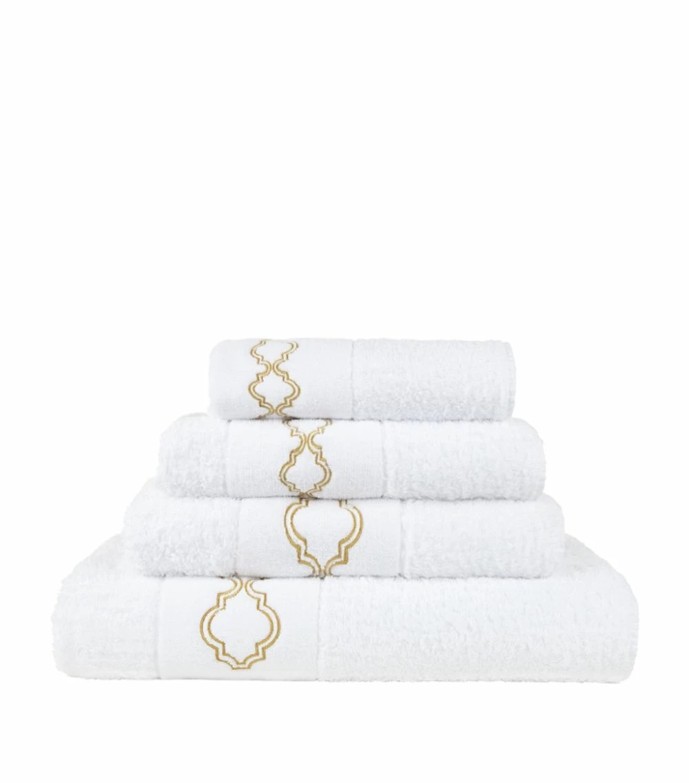 A touch of metallic brings a contemporary twist to this Egyptian cotton towel collection.