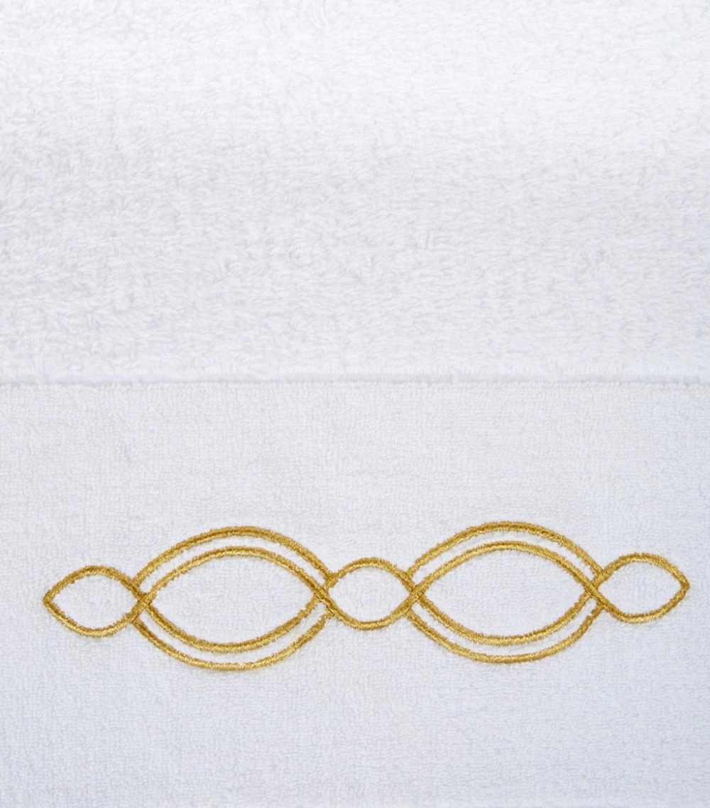 Crafted in plush white cotton, the Abyss & Habidecor Décor range is a sophisticated choice for your bathroom. Featuring a geometric design embroidered in gold thread, each towel is crafted from only the finest combed cotton for a super-soft and absorbent finish.